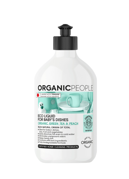 Organic People Eco liquid for baby’s dishes. Organic Green tea & Peach, 500 ml