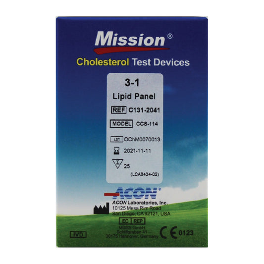 MISSION 25-PIECE 3-IN-1 TOTAL CHOLESTEROL TEST STRIPS