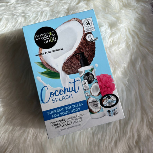 Organic Shop Coconut Splash Body Care Gift Set – Shower Gel, Body Scrub & Sponge