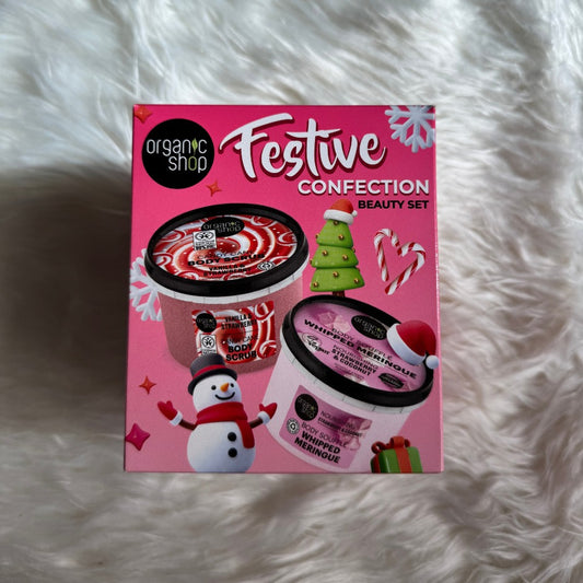 Organic Shop Festive Confection Beauty Gift Set, Candy Cane Body Scrub & Whipped Meringue Body Soufflé